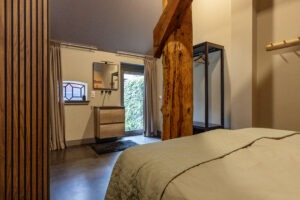 Wanneer u van rust en ruimte houdt bent u bij ons aan het juiste adres! Het verblijf is zeer ruim en van alle moderne gemakken voorzien. De begane grond heeft een eigen ontvangst in de” baander ”( waardoor vroeger de wagens met hooi naar binnen werden geduwd) met daarin een imposante entree. De woonkamer/keuken van maar liefs 62 vierkante meter, is voorzien van een ruime keuken met combimagnetron, inductie kookplaat, vaatwasser, en koel/vries kast. Ook op de begane grond een toilet en een ruime twee persoons slaapkamer met boxspring bedden en wastafel.