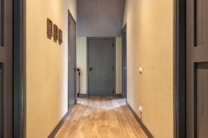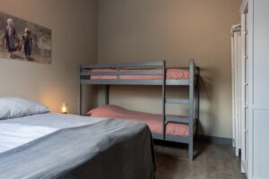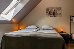 De bovenste etage heeft ook drie ruime slaapkamers met boxspring bedden.